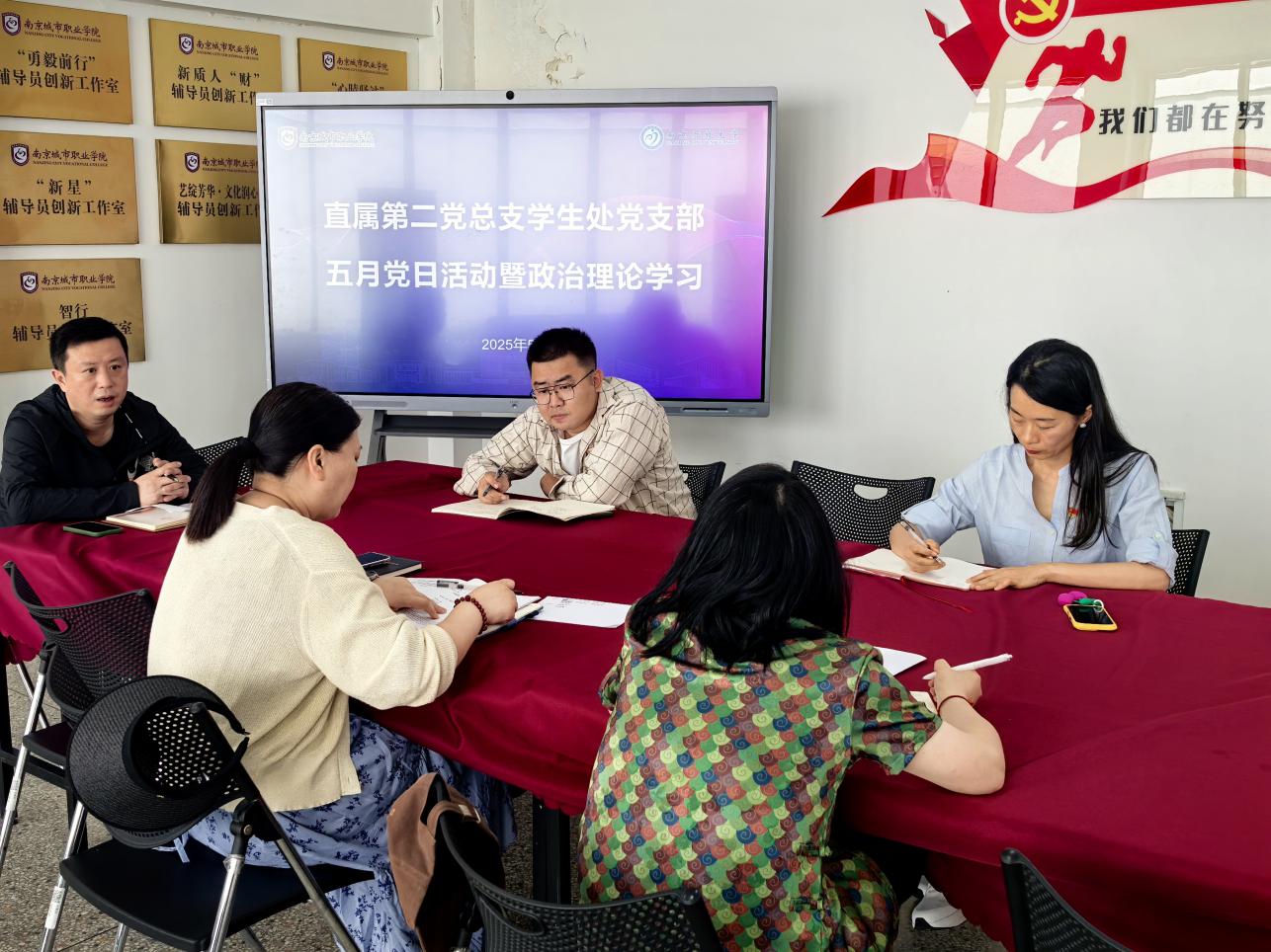 为深入学习贯彻党的创新理论,强化党员干部作风建设,5月26日,直属第二党总支学生处党支部在“一站式”学生社区综合服务中心开展五月党日活动暨政治理论学习。党支部全体党员围绕“深入贯彻中央八项规定精神,筑牢思想根基”主题,通过集中学习、谈心谈话、警示教育等形式,推动理论学习与工作实践深度融合。本次党日活动由学生处党支部书记严翔主持。