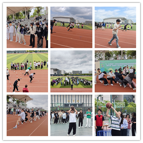 定点投篮环节,各宿舍4人小队男女分组竞技,选手们全神贯注,精准投射间尽显个人技巧与团队默契;走动颠球项目中,选手们小心翼翼端球接力,诠释着团队配合的重要性;迎面接力跑场上,4男4女组成的接力队伍如离弦之箭,交接棒迅速流畅;拔河比赛以学院为单位展开激烈角逐,每队20人齐心协力,力量与激情在此碰撞;“一圈到底”项目里,各学院参赛队伍紧密相连,凭借肢体协调让呼啦圈顺利穿梭;滚铁环个人赛中,选手们熟练操控铁环,在赛道上飞速前行,尽显运动风采。