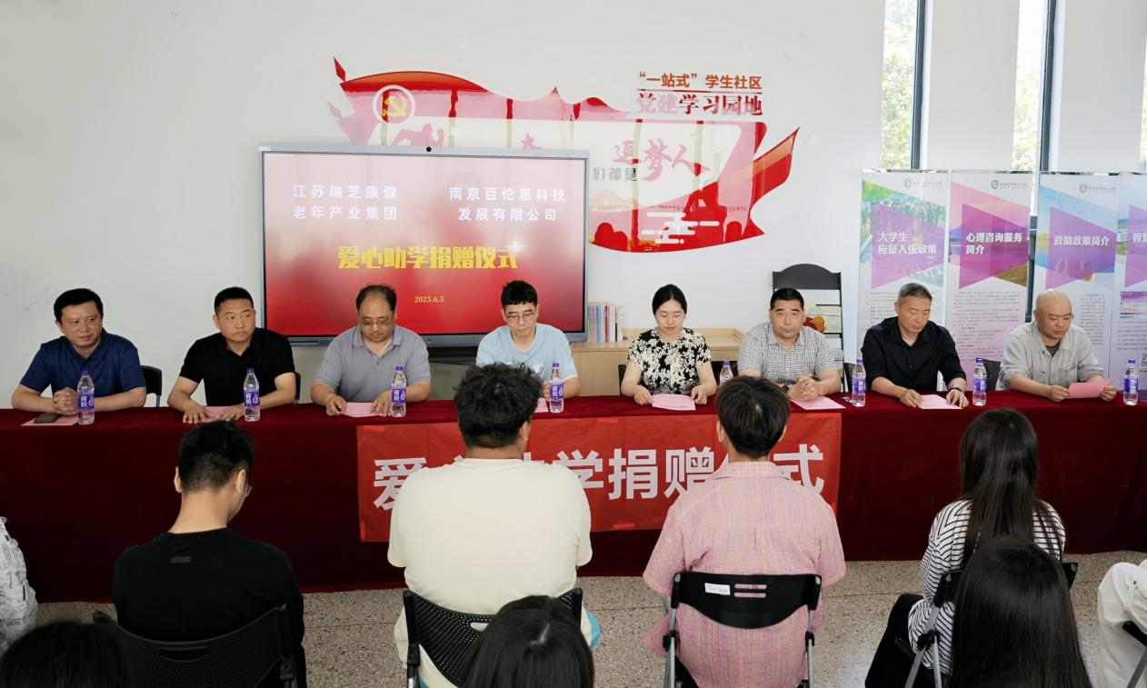 活动现场,江苏瑞芝康健老年产业集团人事部经理王雪芹表示:“希望通过我们的绵薄之力,为同学们的学习与生活增添一份温暖,助力大家更好地追逐梦想。”南京百伦思科技发展有限公司代表商务总监邹尚文也亲切发言,鼓励同学们珍惜在校时光,利用好学校的优质资源,不断提升自我,为未来步入社会打下坚实基础。