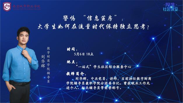 5月6日、5月8日晚间,“厚生”社区讲堂在“一站式”学生社区综合服务中心持续热闹开讲,讲座聚焦大学生成长难题,介绍信息甄别方法;分享个人成长与职业规划经验,照亮同学们的求知之路。。