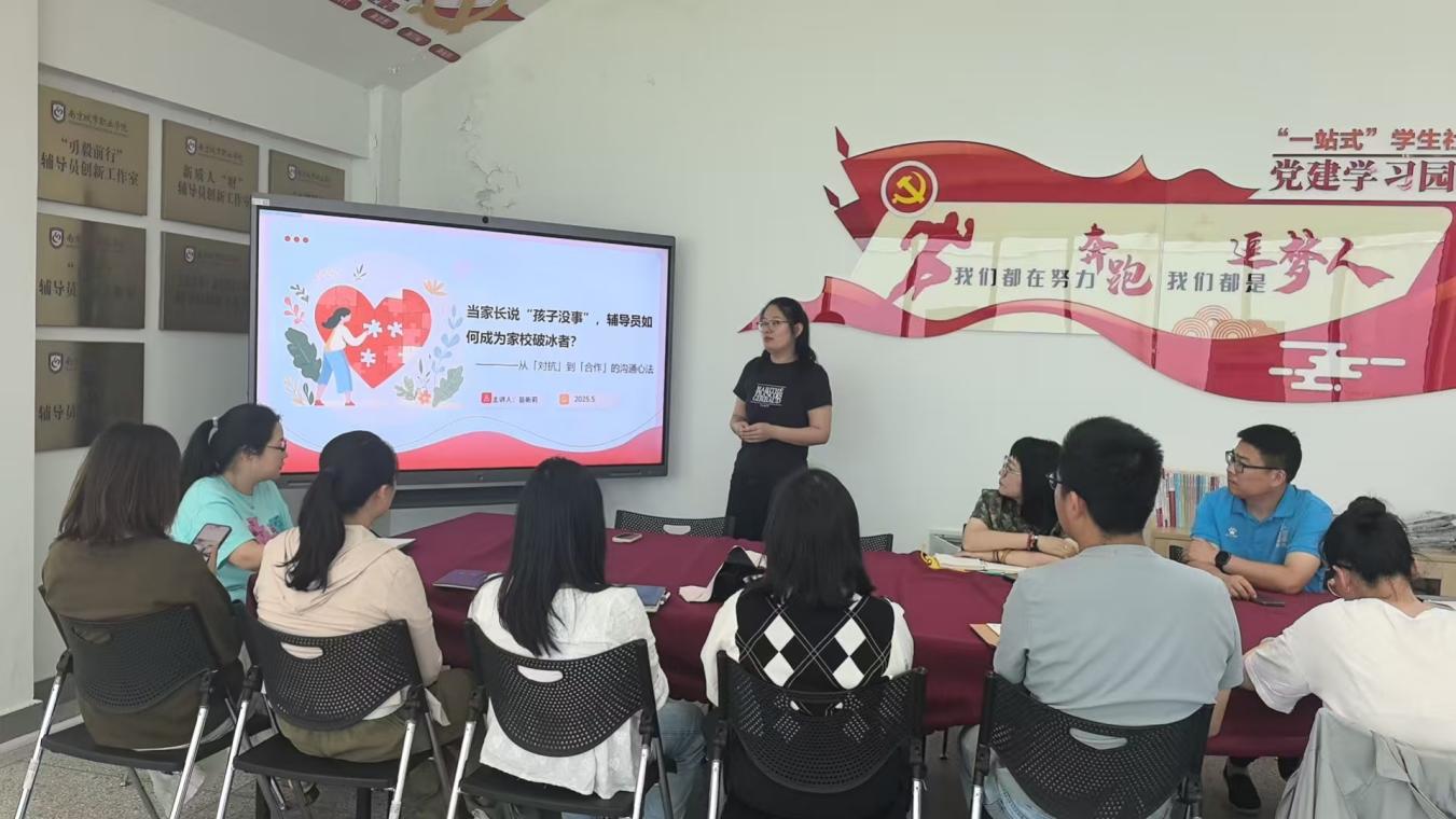 5月29日下午,学生处在溧水校区“一站式”学生社区综合服务中心举办2025年五月份辅导员工作沙龙,本次沙龙由“心晴驿站”辅导员创新工作室承办。各二级学院学工办主任、心理辅导员及部分辅导员参加沙龙,围绕如何面对学生的心理问题及家校沟通展开深入交流。