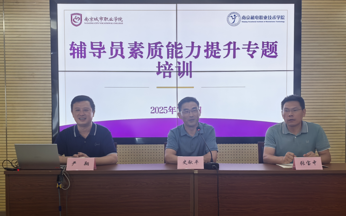 为深入贯彻落实立德树人根本任务,进一步加强新时代高校辅导员队伍建设,推动校际间学生工作经验的深度交流与融合创新,7月8日至10日,我校与南京机电职业技术学院联合举办的辅导员素质能力提升专题培训圆满落幕。两校全体辅导员及学生工作处相关人员齐聚一堂,共同参与此次培训研修活动。
